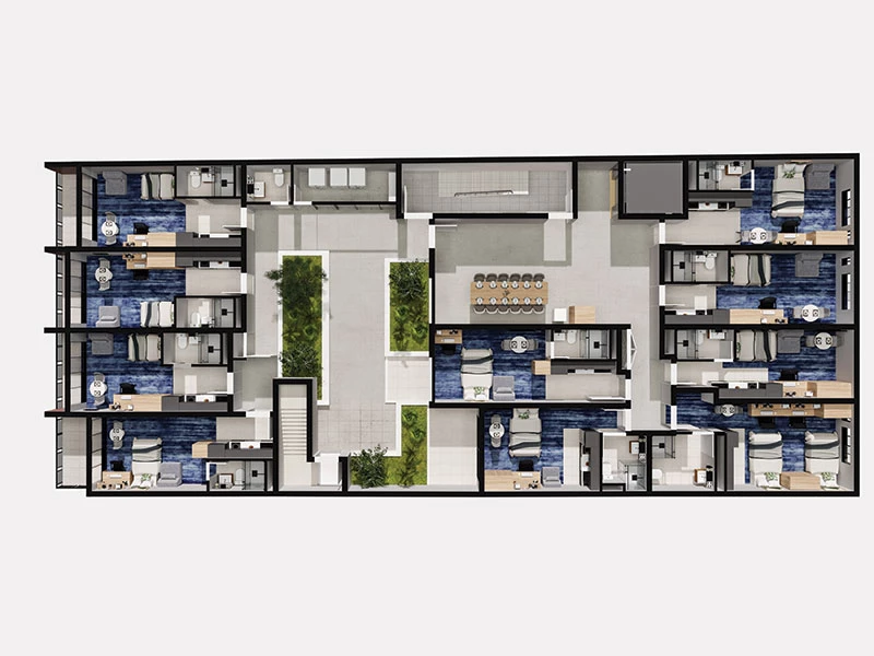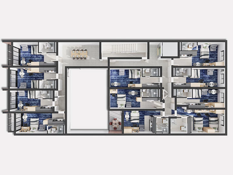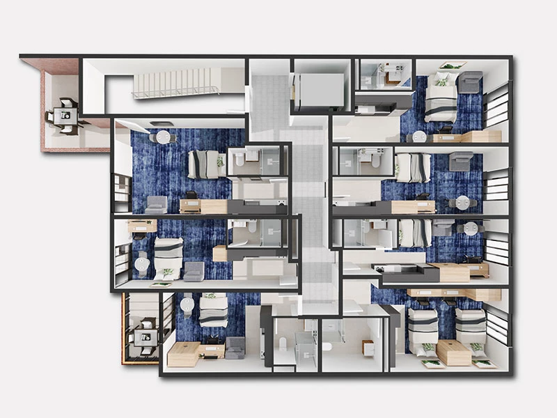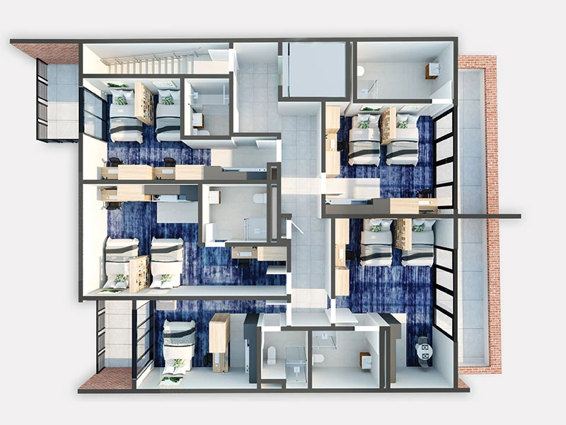 These fully furnished twin-share apartments offer luxury boutique student accommodation of the highest quality. Showcasing generous modern layouts with state-of-the-art inclusions, they provide a cost-effective rental option for those who want to share with a friend, sibling or meet new people.