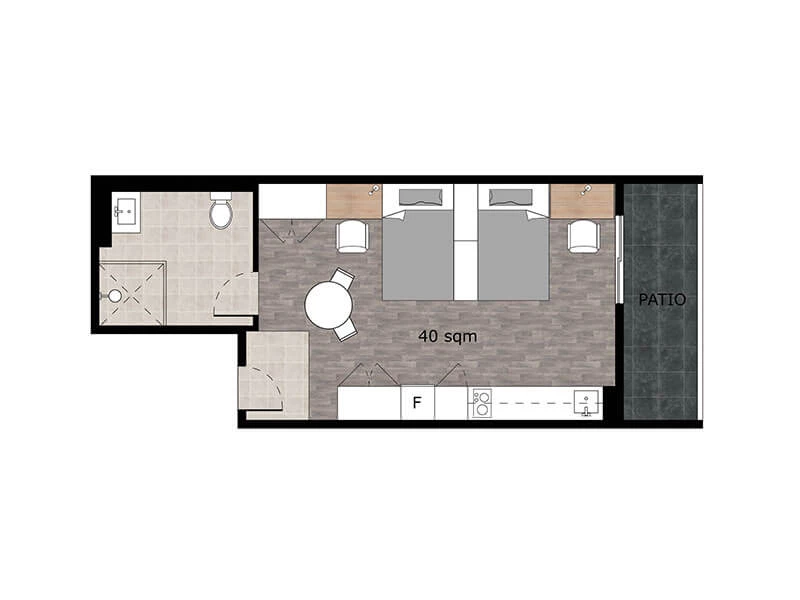 Our spacious rooms are designed to an exceptional standard with premium finishes throughout whilst optimising privacy and comfort, the generously sized studios range from single rooms measuring 26-32sqm and twin-share approx 40sqm. The entire building was recently constructed to perfection, utilising each individual room’s floorboards, greatly desired high ceilings, sun-filled and spacious balconies, and double-glazed windows.