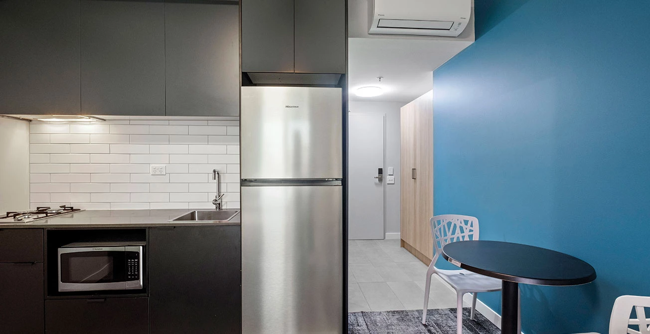 Catering to all budgets, you can share a room with a friend in a deluxe twin apartment, relax in the privacy of a single studio, or upgrade to a penthouse. You can walk to great cafes, local shops and public transport, while the city is just 4kms away. Providing the same unbeatable level of style and quality as nearby ‘Castle Carillon’ Newtown and ‘Castle Camperdown One’, you will be part of a close knit student community where living, learning and playing has never been so much fun.