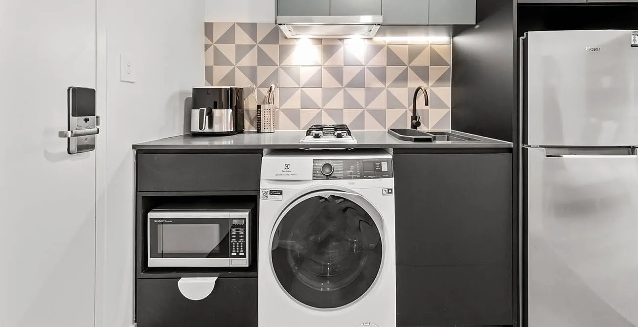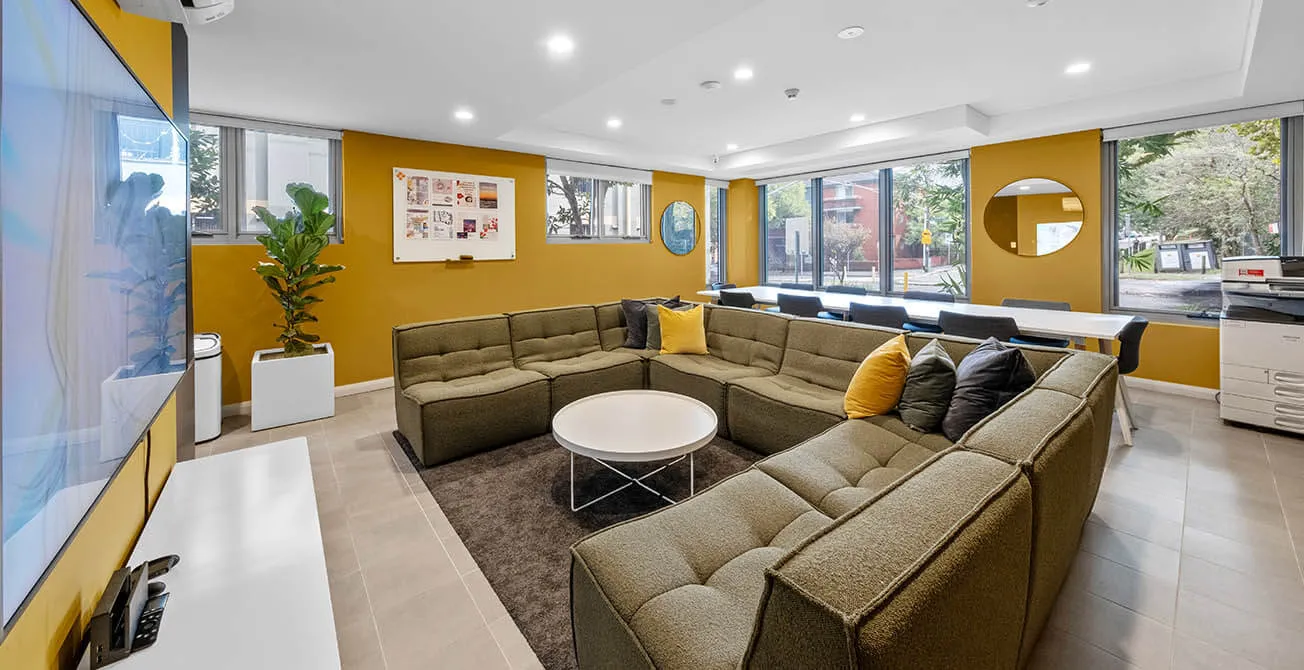 Our spacious rooms are designed to an exceptional standard with premium finishes throughout whilst optimising privacy and comfort, the generously sized studios range from single rooms measuring 22sqm to 29 sqm and twin-share from 26sqm. Each studio at the Castle is carefully curated to perfection, offering all desirable must-haves, varying from ample balconies and large windows to a gourmet kitchen containing a gas cooktop, oven, microwave and full-sized fridge. As well as our developers maximising the open space to offer each student a custom made built-in wardrobe and study desk, alongside a sleek modern bathroom with fine vanities.