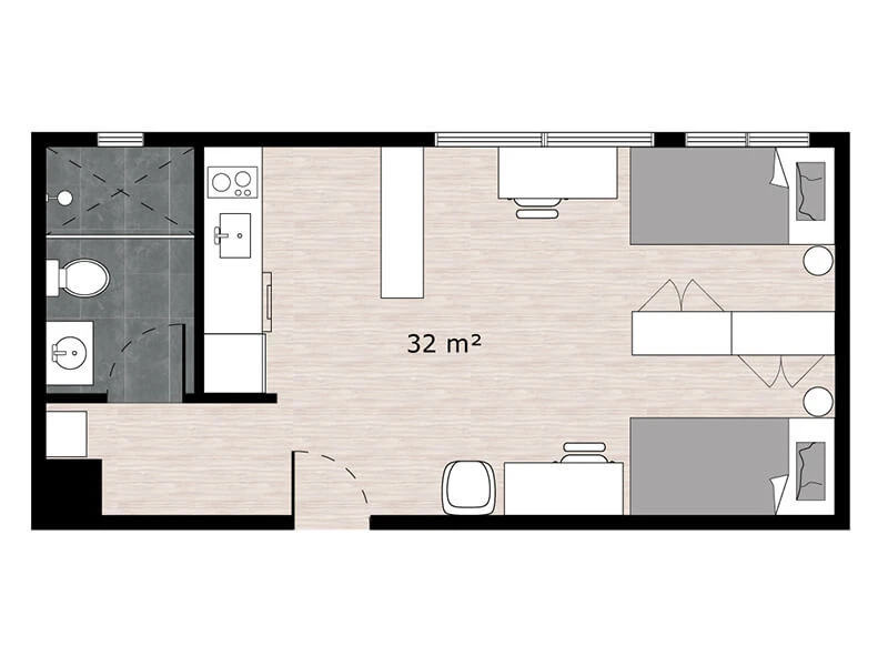 No matter what your preference is, you’ll enjoy the stylish design and quality finishes of our studios. You’ll also have your own private space where you can chill out and recharge.