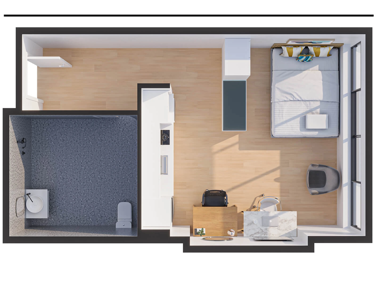 No matter what your preference is, you’ll enjoy the stylish design and quality finishes of our studios. You’ll also have your own private space where you can chill out and recharge.