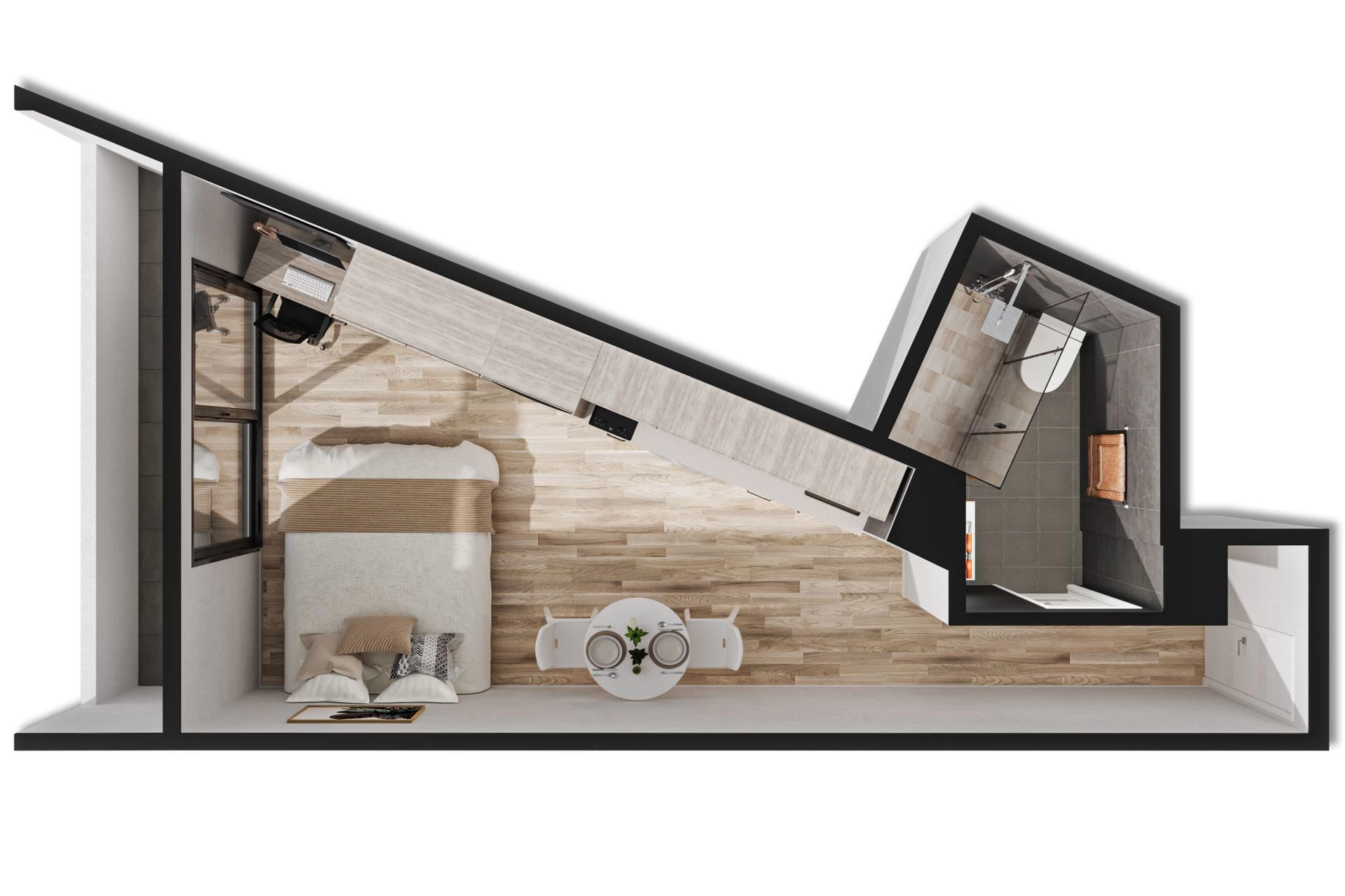 Our spacious rooms are designed to an exceptional standard with premium finishes throughout whilst optimising privacy and comfort, the generously sized studios range from single rooms measuring 26-32sqm and twin-share approx 40sqm. The entire building was recently constructed to perfection, utilising each individual room’s floorboards, greatly desired high ceilings, sun-filled and spacious balconies, and double-glazed windows.